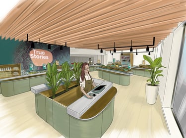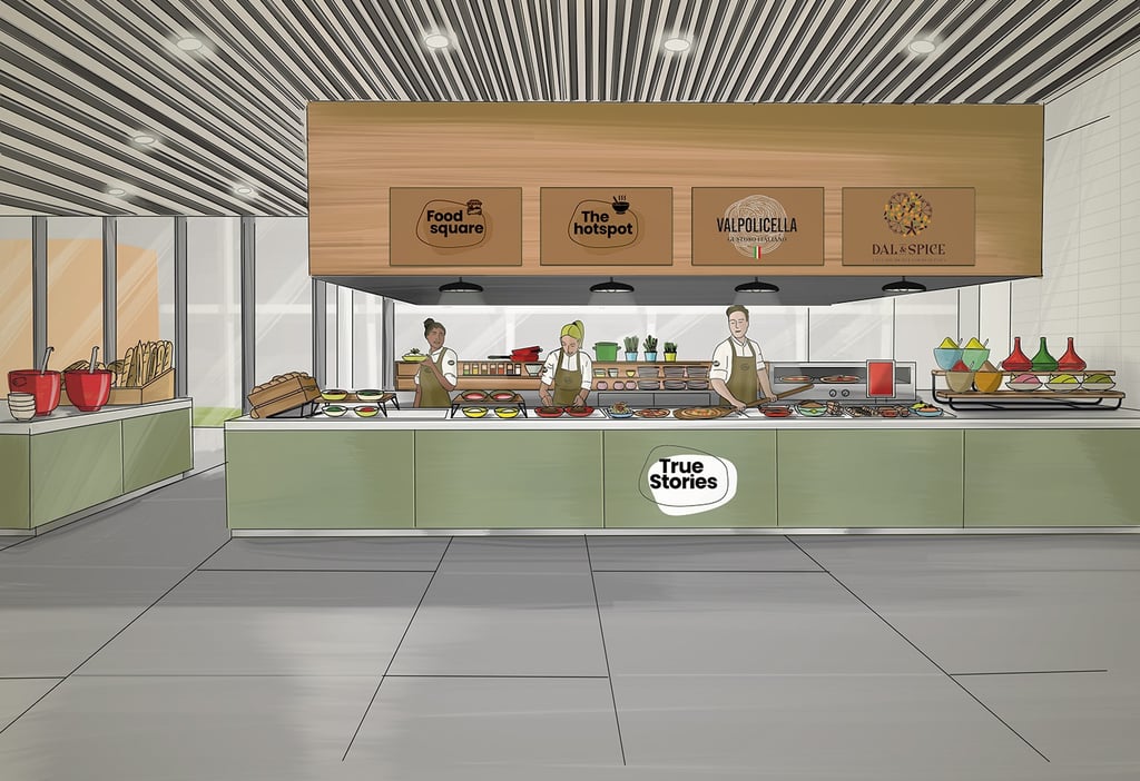 in opdracht van ISS Facility Services (Food)concepten TRUE STORIES / UNITYvoor corbion (dsm) / Icc (inter. strafhof)illustratiestijl schetsen in kleur