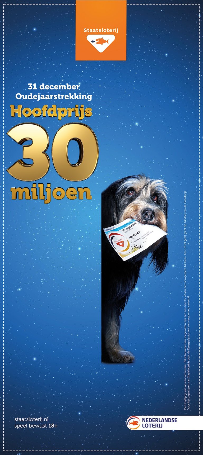 Opmaak volgens vastgestelde huisstijl voor de Staatsloterijcampagne voor de oudejaarstrekking 2024